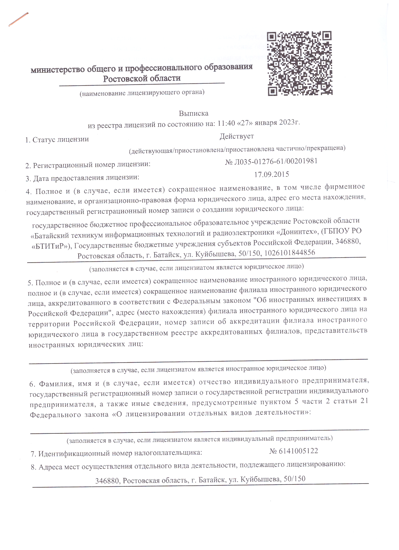 государственное бюджетное профессиональное образовательное учреждение Ростовской области "Батайский техникум информационных технологий и радиоэлектроники"