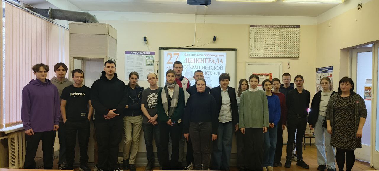 В преддверии памятной даты для студентов группы И-44 советником директора по воспитанию Н.Е. Мищенко совместно с преподавателем истории Г.В. Хопряниновой было организовано мероприятие «Дорога жизни» с использованием интерактивного материала от музея Победы. Обучающиеся посетили виртуальную выставку «Ленинград. Дорога жизни».