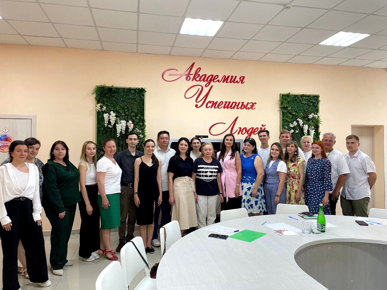 На совещании присутствовали: Чупров М.Г., региональный координатор проекта "Навигаторы детства", Деркач К.А., врио начальника УО г.Батайска, Меликян А.Г., специалист по аналитике регионального ресурсного центра проекта "Навигаторы детства", Зенкова Т.Г., научный руководитель управления образования г. Батайска и модератор, Голубева Е.В., муниципальный координатор проекта, советники директора по воспитанию нашего города.