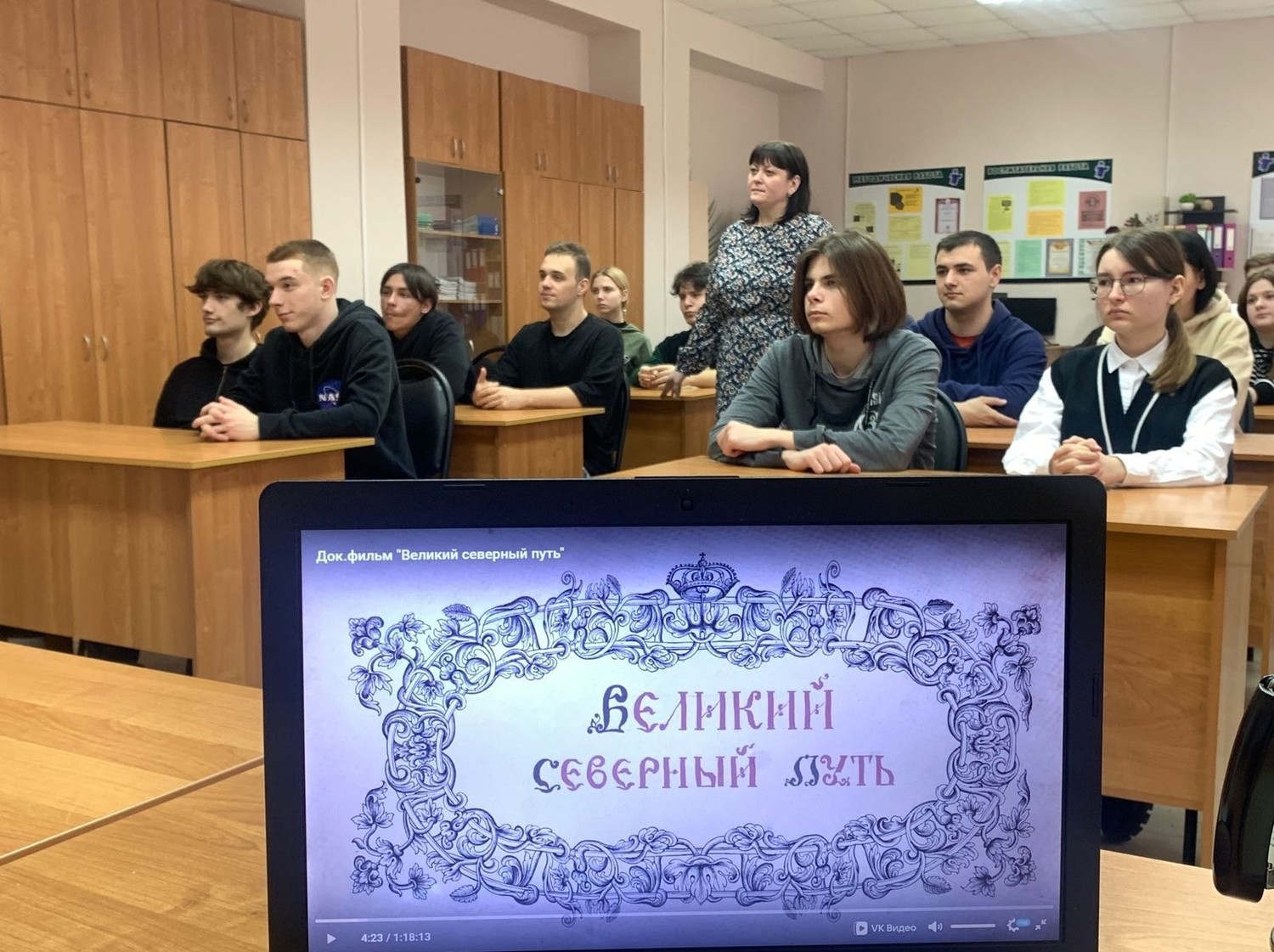 Для студентов группы П-42 советником директора по воспитанию и взаимодействию с детскими общественными объединениями был организован кинолекторий «Вдохновляясь наукой». В рамках этого мероприятия обучающиеся посмотрели документальный фильм "Великий северный путь". Фильм был снят при поддержке Русского географического общества и является частью проекта "Арктика. Заповедная зона". Ребята узнали о севере России, познакомились с его красотой, жизнью местных жителей, а также с естественными достопримечательностями и уникальными природными явлениями.