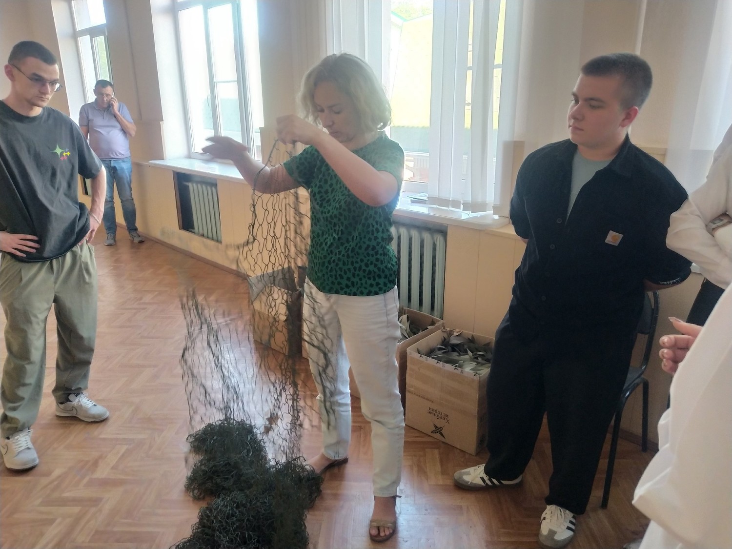 Студенты имели уникальную возможность посетить мастер-класс волонтерской организации "Сети для наших" по плетению маскировочных сетей от волонтера Анны Владимировны.