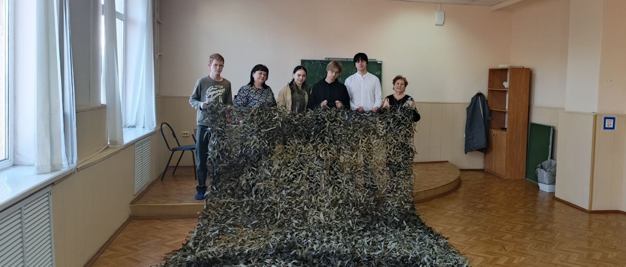 Студенты и преподаватели нашего образовательного учреждения продолжают активно участвовать в плетении маскировочных сетей, оказывая помощь нашим защитникам.