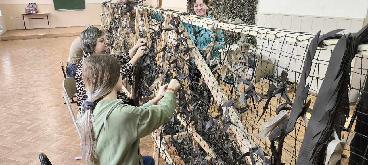 Студенты и преподаватели нашего образовательного учреждения продолжают активно участвовать в плетении маскировочных сетей, оказывая помощь нашим защитникам.