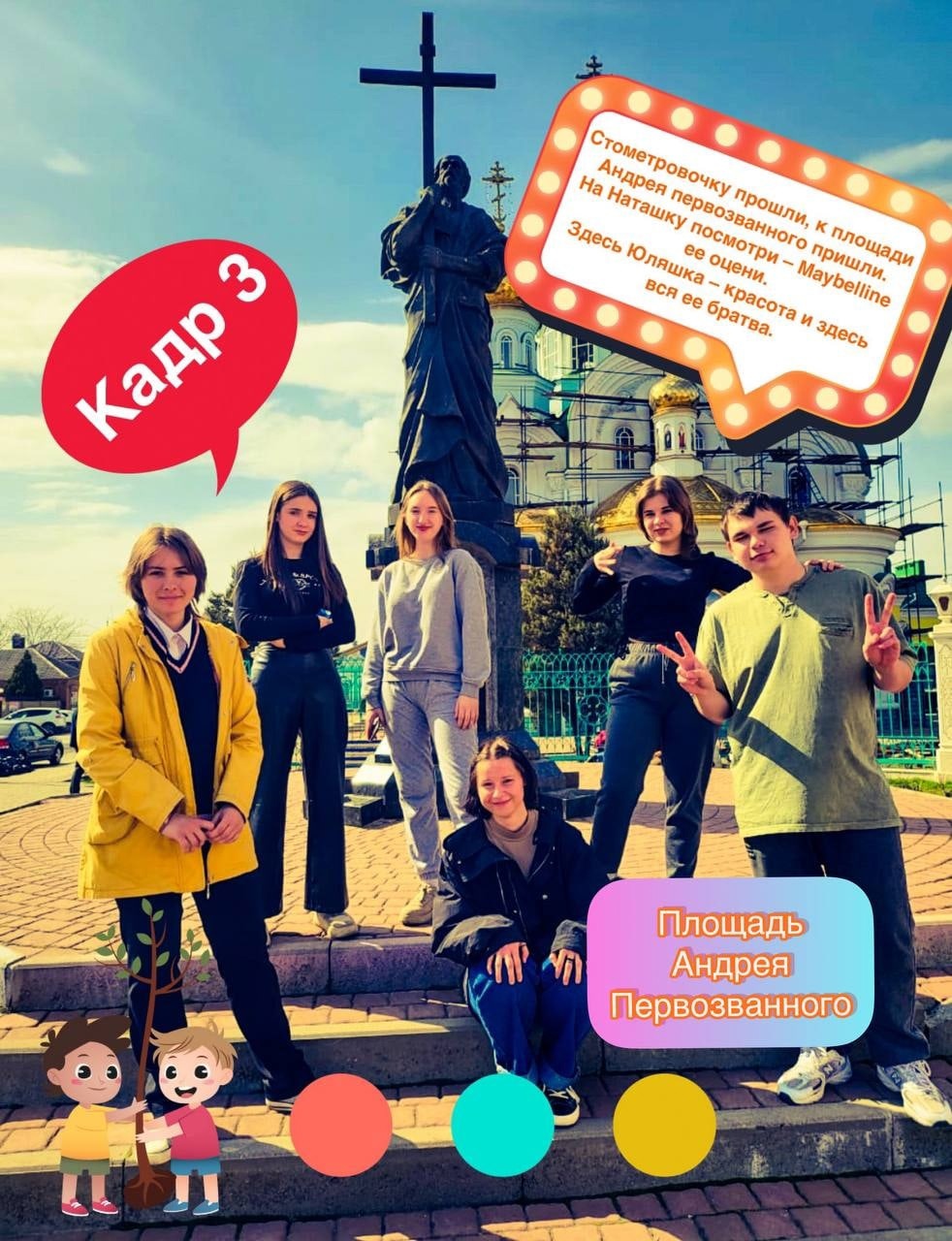 Наша команда посетила площадь Святого Андрея Первозванного. Место, где собирается вся молодежь нашего города. И конечно придумали небольшое четверостишье.